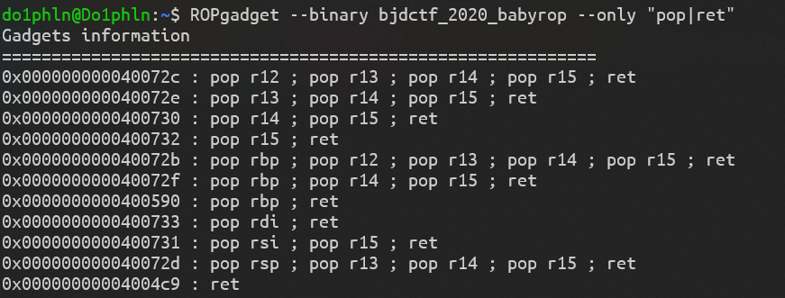 | ROPgadget --binary get_started --only 'pop|ret' | grep pop