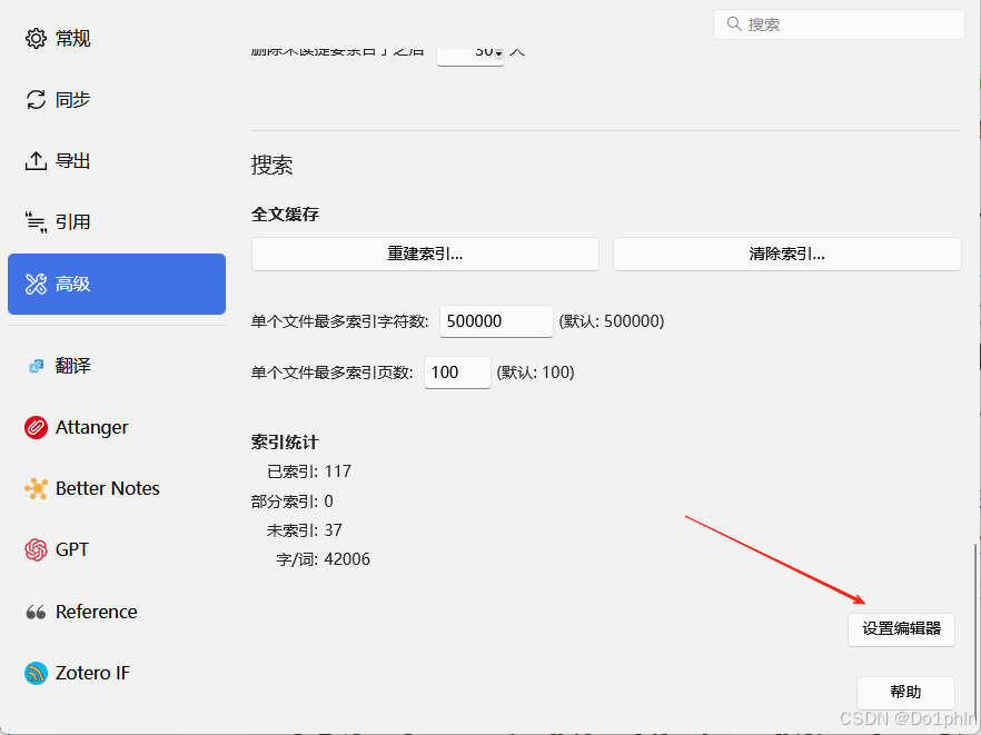 在左上角菜单栏选择【编辑】-【设置】,在设置页面内选择高级选项卡,找到【设置编辑器】选项并打开