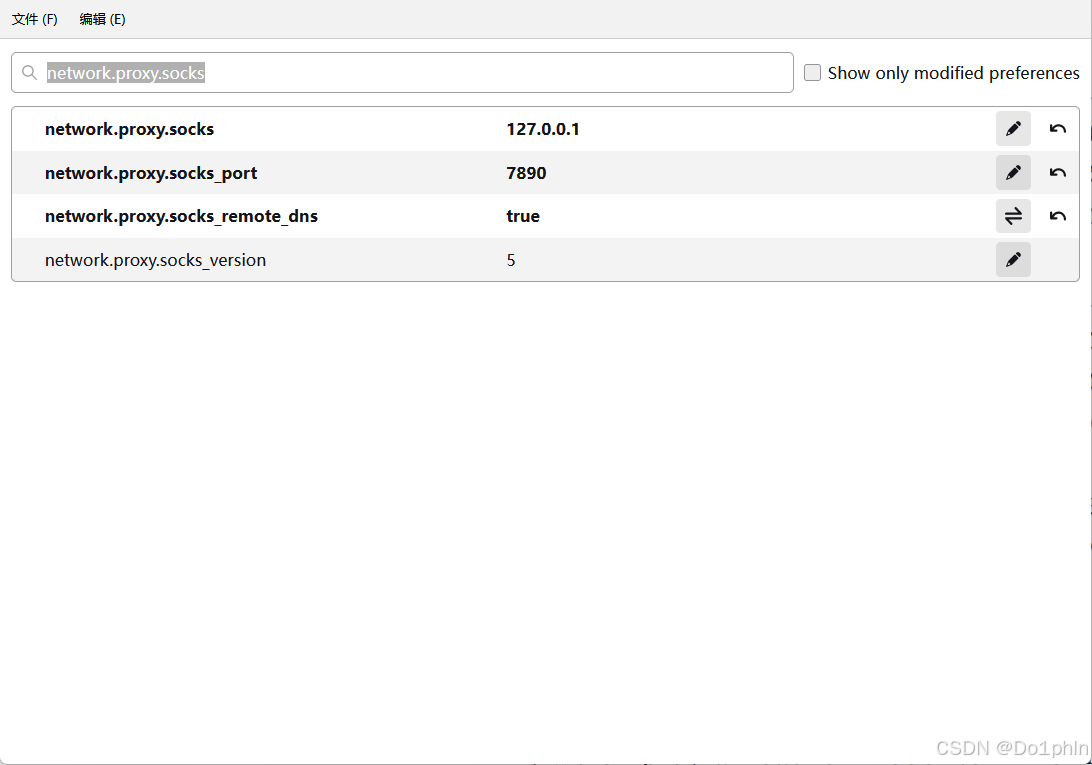 接下来搜索network.proxy.socks,将其中的network.proxy.socks设置为你的代理地址,network.proxy.socks_port设置为你的代理端口,将network.proxy.socks_remote_dns设置为true,这表明启用了代理的DNS,这样代理配置就完成了。